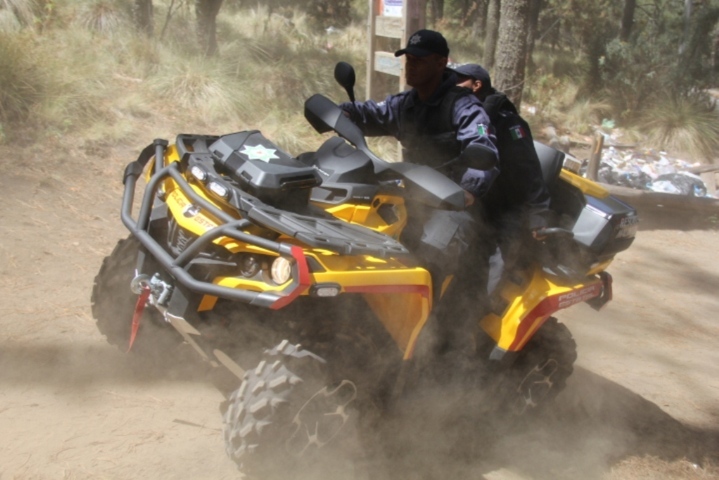 La exploración inició sobre el camino 20 ascendente, con siete uniformados del “Grupo de Rescate Malinche”, a bordo de las cuatrimotos con características exclusivas para el terreno de la montaña.
