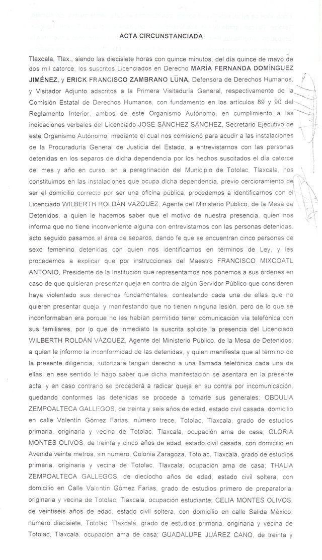 De acuerdo a actas que obran en el poder de la Comisión Estatal de Derechos Humanos (CEDH), siete de los detenidos suscribieron un acta en donde manifestaron su negativa por interponer alguna queja contra algún servidor público al no tener lesión alguna o haber padecido actos que violentaran sus derechos humanos durante y después de la detención.