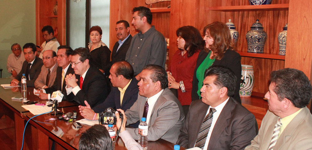 Tlaxcala Tlax., 5 de junio de 2014.-Este jueves, se llevó a cabo una rueda de prensa con la presencia del diputado presidente de la Junta de Coordinación y Concertación Política de la LXI Legislatura del Congreso de Tlaxcala, Marco Antonio Mena Rodríguez, junto con los diputados María Angélica Zarate Flores, María Antonieta Maura Stankiewicz Ramírez, Florentino Domínguez Ordoñez, Jaime Piñón Valdivia, Albino Mendieta Lira, José Javier Vázquez Sánchez, Tomás Orea Albarran, Juan Ascensión Calyecac Cortero, Bladimir Zainos Flores, Juana de Guadalupe Cruz Bustos, Armando Ramos Flores, Ángel Xochitiotzin Hernández en la que informaron que la Suprema Corte de Justicia de la Nación (SCJN), desechó la acción de inconstitucionalidad en contra de la Comisión Permanente, presentada por varios diputados recientemente.