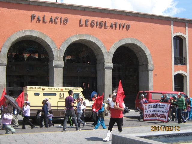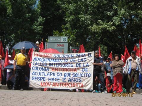 En este contexto, se concentraron frente al palacio de gobierno pobladores de los municipios de Tlaxcala, Panotla, Santa Anna y Contla para continuar su protesta realizando un mitin, donde los pobladores expusieron su rechazo a la cerrazón del Ejecutivo, así como para informar que algunas de las colonias antorchistas llevan más de dos años solicitando servicio de drenaje, agua potable y pavimentación de calles, mismas que siguen sin resolverse.