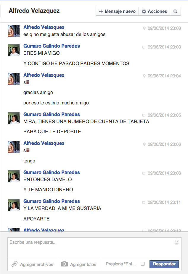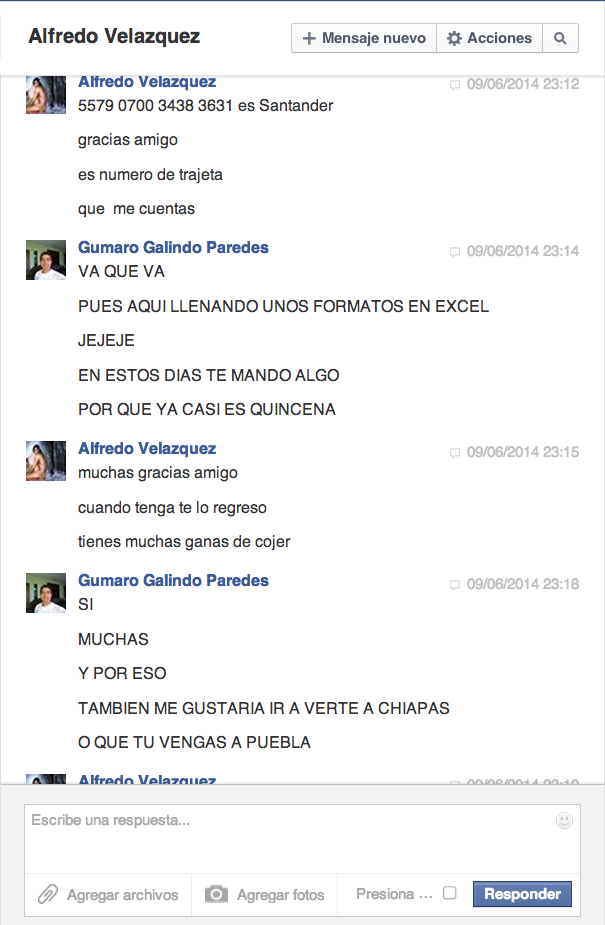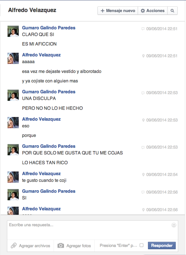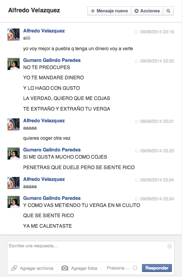 La conversación filtrada habría dado inicio el 11 de febrero de 2011 y la última platica el pasado 9 de junio, en donde destaca la manera en la que intima supuestamente Gumaro Galindo Paredes con Alfredo Velázquez, siendo que el primero apoyaría económicamente al segundo con el objeto de tener encuentros íntimos.