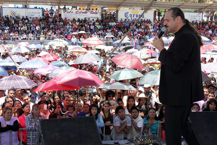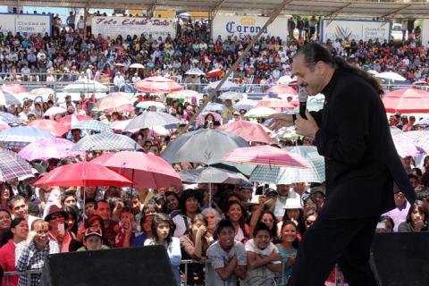 Calpulalpan, Tlaxcala.- Como parte de los festejos en honor a San Antonio de Padua, en su feria tradicional edición 2014, al mediodía de hoy, en evento totalmente gratuito, en la Unidad Deportiva, cerca de 8 mil personas se congregaron para disfrutar del show del comediante Teo González, quien con sus “Sketchs” arranco las risas de los ahí presentes, siendo antecedido este espectáculo con la presentación del grupo ”Tropirrollo”, que a ritmo de su música pusieron a bailar a los asistentes por más de dos horas.