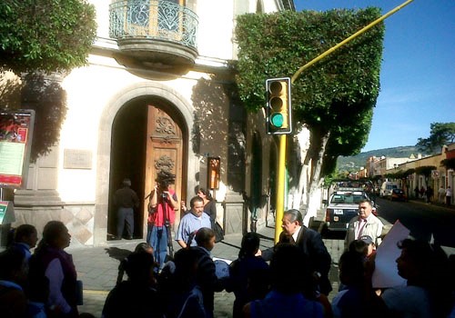 Al filo de las 09:00 horas, los inconformes sufrieron los embates del expresidente de la Comisión Estatal de los Derechos Humanos (CEDH) quien intentó jalonear a los menores de edad, no obstante, cejó en su intentona al verse descubierto por algunos comunicadores cuando se encontraban manifestándose en la esquina que hace la avenida Juárez con Lardizábal.