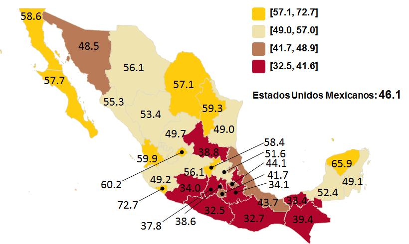 Finalmente en lo que compete al nivel de satisfacción general con los servicios públicos básicos y bajo demanda, en Tlaxcala sólo el 45.1 por ciento esta satisfecho, en tanto que en Colima es el 71.5 por ciento, Nuevo León 63.6 por ciento y en contraparte esta Guerrero con 34.3 y Oaxaca con 37.5 por ciento.