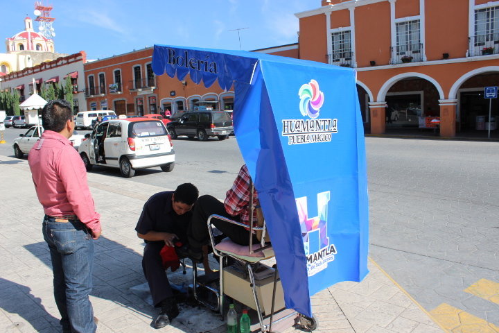 Huamantla, Tlaxcala.- Como parte del reglamento de Pueblos Mágicos, el ayuntamiento de Huamantla a través de la Dirección de Desarrollo Económico y comercio entregó en días pasados toldos solares a boleros de la ciudad, mismos que servirán para mejorar la imagen urbana del municipio.