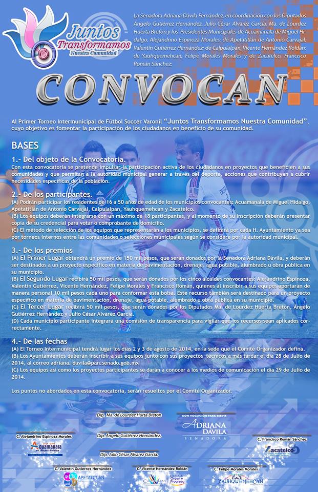 Para tal efecto los cinco Municipios deberán realizar su eliminatoria interna en las próximas semanas ya que la final de este torneo se llevara a cabo los días 2 y 3 de Agosto del presenta año en sede por definir, de igual manera manifestaron que en próximas fechas darán a conocer, antes del 28 de Julio, los proyectos de obra pública que concursaran en dicho torneo intermunicipal.