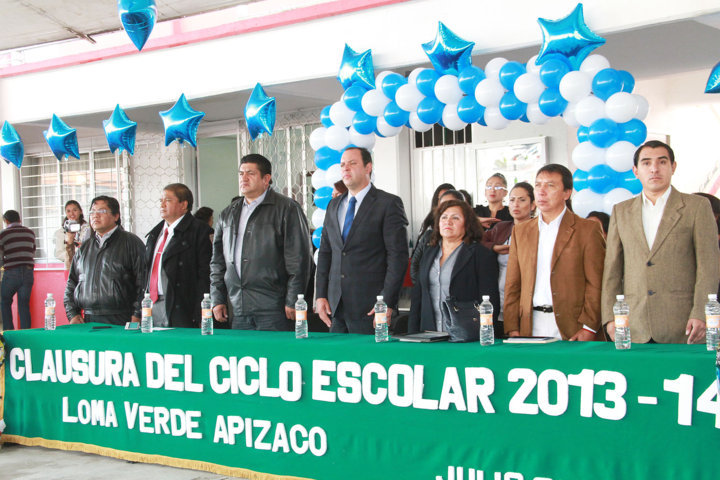 Asiste el presidente municipal de Apizaco, Jorge Luis Vázquez Rodríguez  a la clausura del ciclo escolar 2013-2014 de la escuela primaria “Mi patria es primero” de la colonia Loma Verde; más tarde acompañado del gobernador del estado, Mariano González Zarur, asistió a la graduación de los alumnos del Centro de Bachillerato Tecnológico Industrial y de Servicios.