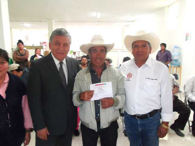 En las instalaciones de SEDATU Delegación Tlaxcala y en presencia del Prof. Miguel Vázquez Hernández Líder de la C.N.C (Confederación Nacional Campesina) en Tlaxcala, se hizo entrega de bonos de subsidio correspondientes a 100 acciones con un valor total de $2,000,000 (Dos Millones de Pesos)