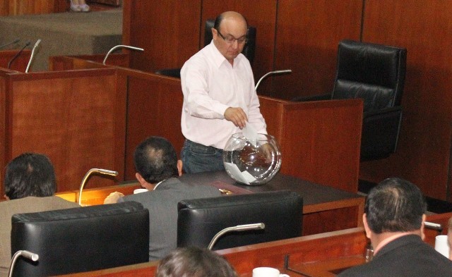 Y es que Xochitiotzin Hernández estuvo a punto de caerse, en el momento que pasó a depositar su voto en la urna, ya que fue mediante cedula como se llevó a cabo la votación para conformar la Mesa Directiva.