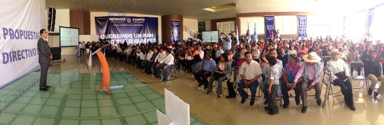 “El PAN, debe llegar fuerte, sólido y ganador a la contienda del 2015 y estar listos para asumir el reto de gobernar Tlaxcala en el 2016. Ese es el reto de este equipo y me atrevo a decir, para todos los panistas de bien. Impulsaremos al panista que garantice nuestro triunfo. No estoy aquí para trabajar la aspiración de alguien, estoy aquí para que gane el PAN. Vamos generando opciones y en el momento adecuado, tomemos juntos la decisión de con quienlograremos el objetivo”, enfatizó.