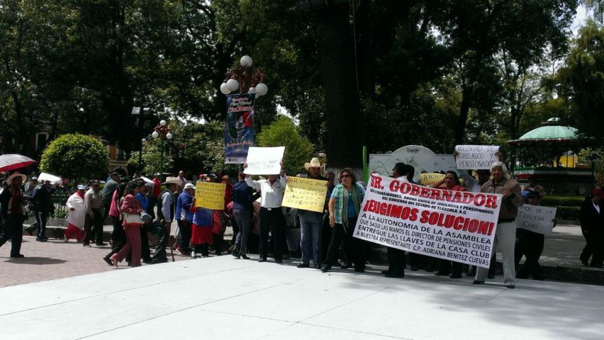 Extrabajadores del Gobierno del Estado exigieron a través de una manifestación pública que la Dirección de Pensiones Civiles no se entrometa en los asuntos internos de la Unión de Pensionados y Jubilados de Tlaxcala.