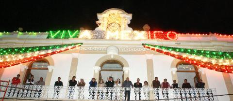 En compañía del Secretario del H. Ayuntamiento, Ricardo Daniel Aparicio Solórzano; La Presidenta del SMDIF, Araceli Ramírez López; La Sindico Municipal, Anabel López Macías; El Diputado Suplente por el Distrito XIII, José Antonio Morales Morales; Regidores, Funcionarios Públicos Municipales y ciudadanía en general, Hernández Roldán, encabezo la cuenta regresiva para iluminar con motivos patrios el primer cuadro de la Ciudad, que adornan desde este domingo las noches de Palacio de Gobierno Municipal y los portales adyacentes, adornos Mexicanos que se extienden a diversos puntos de la Ciudad.