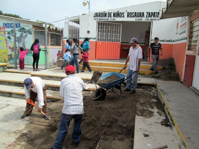 San Francisco Tetlanohcan, Tlax., 02 de septiembre de 2014.- Continuando sus recorridos por instituciones educativas, el alcalde de Tetlanohcan, Antonio Mendoza Papalotzi, visitó este martes el jardín de niños Rosaura Zapata, donde entregó diversos apoyos para fortalecer la infraestructura escolar.