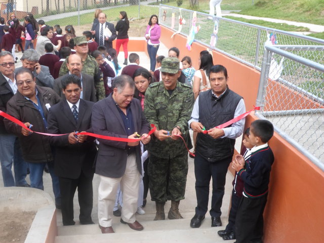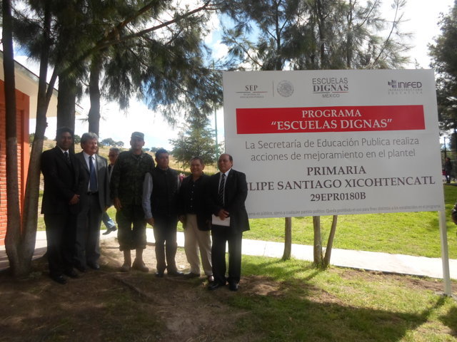 SE CONSTATAN TRABAJOS REALIZADOS EN EL JARDÍN DE NIÑOS “TLAXCALLAN” Y EN LA ESCUELA PRIMARIA “FELIPE SANTIAGO XICOHTÉNCATL” DE MAZAQUIAHUAC, DEL MUNICIPIO DE TLAXCO, A TRAVÉS DEL PROGRAMA “ESCUELA DIGNA 2014