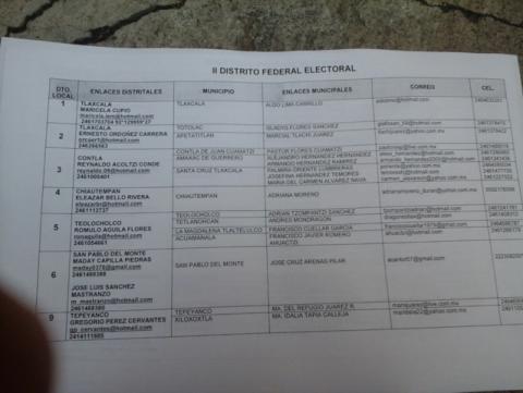 Y es que dicha lista está integrada por funcionarios de primer nivel, entre ellos el secretario de Gobierno, Ernesto Ordóñez Carrera, los cuales fueron asignados a alguno de los tres distritos federales que hay en Tlaxcala para trabajar a favor de los intereses del Partido Revolucionario Institucional (PRI).