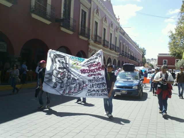 Por enésima ocasión, alumnos de la Fnerrr marchan por calles de la ciudad de Tlaxcala, en demanda de reconocimiento oficial a dos bachilleratos, así como el cumplimiento a sus demandas de mejores condiciones para su desarrollo académico que ya han expuesto a las autoridades educativas.