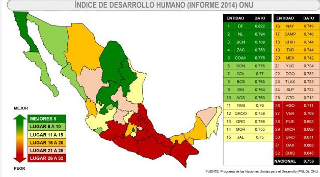 Conforme con el parámetro que maneja la Organización de las Naciones Unidas (ONU) el IDH se enfoca específicamente en tres rubros: Salud, Educación y Riqueza, lo que se refleja en una puntación que va del 0 al 1, en la que nuestra entidad alcanzó 0.723 puntos, mientras que la media nacional se ubicó en 0.756.