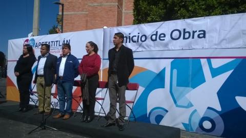 Con una inversión por arriba de los cuatro millones de pesos, cinco calles céntricas de la cabecera municipal de San Pablo Apetatitlán serán rehabilitadas con pavimentación de adoquín, cuyos trabajos iniciaron este viernes con al banderazo de salida a cargo del alcalde, Valentín Gutiérrez Hernández y de la senadora de la República, Adriana Dávila Fernández.