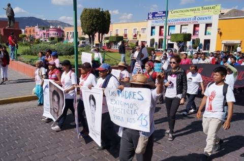 Luego de haber salido al filo de las 11:00 horas de la normal rural de Panotla, el contingente arribó en la plancha del zócalo capitalino, al filo de las 14:00 horas en donde habrán de realizar un mitin para exigir la aparición de los 43 estudiantes desaparecidos en Ayotzinapa Guerrero.