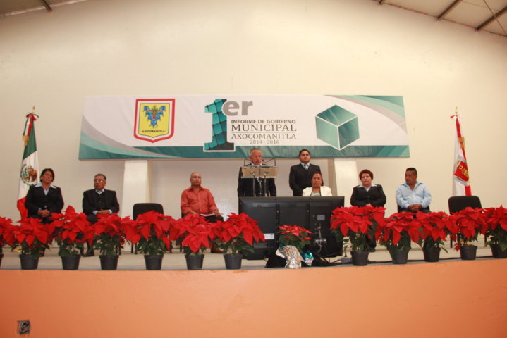 El presidente municipal de San Lorenzo Axocomanitla da su primer informe de gobierno municipal, ante cientos de personas que se dieron cita ayer en el auditorio municipal, el alcalde estuvo acompañado de su cabildo, la síndico municipal Lucia Lima Atempa, el primer Regidor Cristóbal Flores Santamaría, el segundo Regidor Guillermina Santamaría Maldonado, tercer Regidor Javier Mora Santamaría, cuarto Regidor Abraham Flores Pérez y el quinto Regidor Estela Tuxpan Meneses.