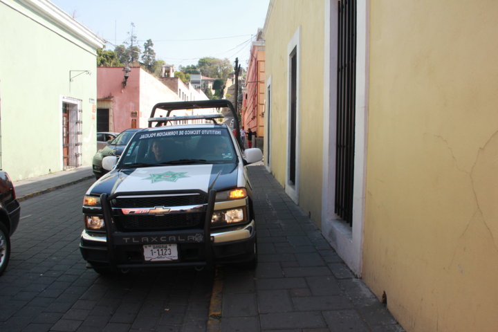 Dos elementos de la policía acreditada al estar en el interior de su patrulla con número de placa 1-1123 que estaba estacionada sobre la banqueta de la calle Lardizábal casi esquina con Xicohtencatl, a unos metros de la escuela de Policía, al darse cuenta que eran fotografiados por un reportero de esta empresa periodística sacaron sus dotes de prepotencia.