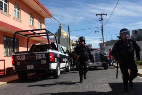 Pobladores del municipio de San José Teacalco y policías estatales se enfrentaron esta mañana, tras una movilización ciudadana para demandar mayor seguridad pública luego del ataque sexual que en fechas recientes sufrió una menor de edad.