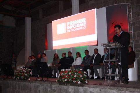 En Sesión Solemne de Cabildo y en cumplimiento a lo establecido en el artículo 41, fracción XXI de la ley municipal del estado de Tlaxcala. Ángel Flores Pineda presidente municipal de Xaltocan, ante ciento de pobladores reunidos en el auditorio municipal rinde su primer informe de gobierno municipal.