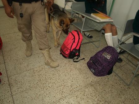 En el operativo participaron también binomios caninos de la Comisión Estatal de Seguridad, Comisión Estatal de Derechos Humanos y padres de familia y se inspeccionaron mochilas de estudiantes, de los turnos matutino y vespertino, con la finalidad de poder localizar objetos punzocortantes o algún tipo de sustancia o droga que pudiera en algún momento poner en riesgo la integridad y salud de los alumnos.