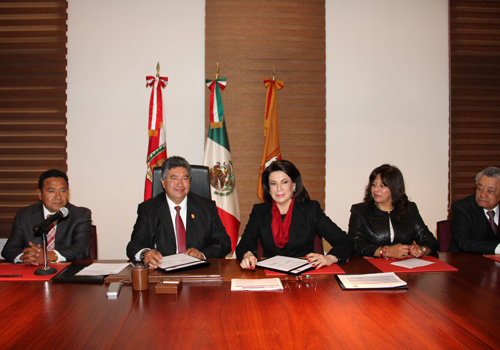 Durante la firma de este convenio, celebrado en la Sala de Juntas de Rectoría, el Mtro. Rubén Reyes estuvo acompañado por los Secretarios y Coordinadores de la Institución y por autoridades de la Procuraduría Federal del Consumidor.