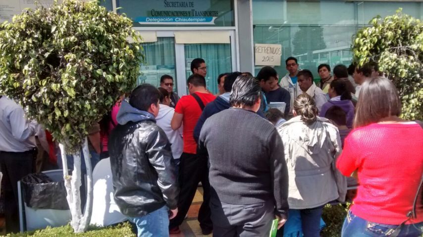 Usuarios que se mantuvieron formados a lo largo de la mañana en la delegación Chiautempan de la Secretaría de Comunicaciones y Transportes del Estado (SECTE), manifestaron de forma severa su molestia porque el servicio de la dependencia para el cambio de placas se ha visto superado por la demanda de automovilistas.
