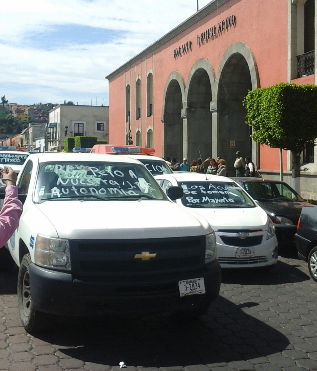Este día, al menos 30 de 36 presidentes utilizaron las unidades oficiales - patrullas - para trasladar su protesta a la ciudad de Tlaxcala frente al Poder Legislativo, sin que se tenga certeza deque los ciudadanos de las poblaciones respalden ese tipo de movilizaciones de sus representantes.