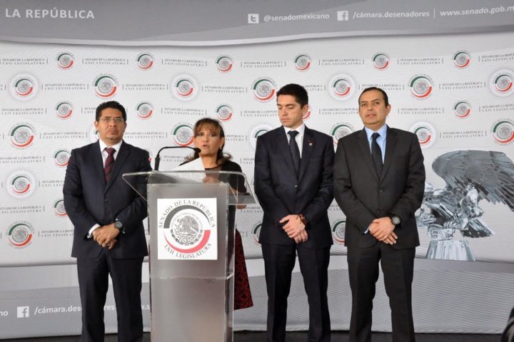 En la conferencia de prensa, los senadores Rabindranath Salazar Solorio, del PRD, y Ernesto Cordero Arroyo y Luis Fernando Salazar Fernández, del PAN, acompañaron a la legisladora Cuéllar Cisneros.