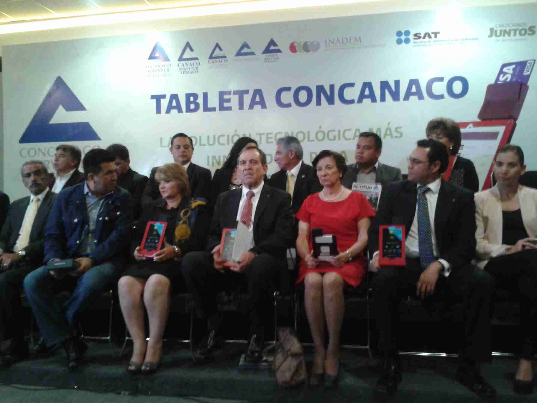 Apizaco, Tlaxcala.- Enrique Solana Sentíes, presidente de la Confederación de Cámaras Nacionales de Comercio, Servicios y Turismo (CONCANACO- SERVYTUR), encabezó en Apizaco la entrega de tabletas electrónicas a micro, pequeños y medianos empresarios, como parte de las estrategias de este organismo y el Servicio de Administración Tributaria (SAT), conjuntamente con el gobierno federal, encaminadas a facilitar el paso de la informalidad a la formalidad.