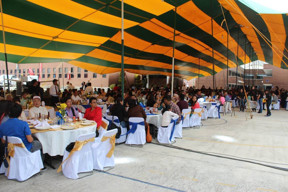 El Rector de la UMT Gregorio Cervantes Serrano, al lado de la Rectora Adjunta Marcelina Cruz Ordaz, el Director de la Fundación Unimetro A.C, Gregorio Adhemir Cervantes Díaz; en compañía de la Delegada del ISSTE, María Elena Perla López Loyo; del Presidente Municipal de Tlaxcala, Adolfo Escobar Jardines, así como de la Periodista América Montoya; dio la bienvenida a más de dos mil 500 comensales, familiares y amigos de los alumnos del Instituto Metropolitano de Monterrey y de la UMT, deseándoles una feliz estancia.