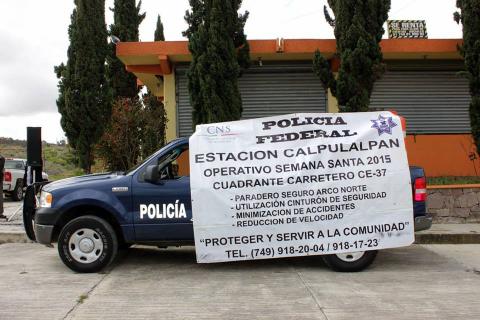 Calpulalpan, Tlaxcala.- Con finalidad de garantizar la seguridad ciudadana y disminuir los índices delictivos y de siniestros, la Secretaria de Gobernación, la Comisión Nacional de Seguridad y la Policía Federal, mediante la división de Seguridad Regional, pusieron en marcha este Viernes 27 de Marzo, en la carretera federal México-Veracruz, a la altura de la comunidad de San Felipe Sultepec, el operativo de periodo vacacional de Semana Santa 2015, en los 150 kilómetros de carretera federal que cuenta la jurisdicción de Calpulalpan, dicho operativo estará vigente hasta el 8 de Abril.