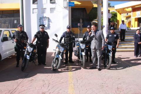 En un acto público realizado la mañana de este lunes en la explanada de la presidencia municipal, el alcalde Hugo Celis Galicia hizo entrega de la cuatro motopatrullas al director de la policía municipal Bonfilio Martínez Pérez, con la pretensión de reducir al máximo la incidencia delictiva local.