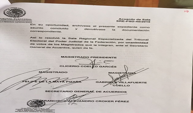 La Sala regional especializada del TEPJF, argumentó que los argumentos del PRI salen de la esfera de su competencia por ser notorio que en el proceso electoral 2015 solo se elegirán diputados federales por lo que su promoción de acciones o actividades legislativas no inciden en el actual proceso federal.
