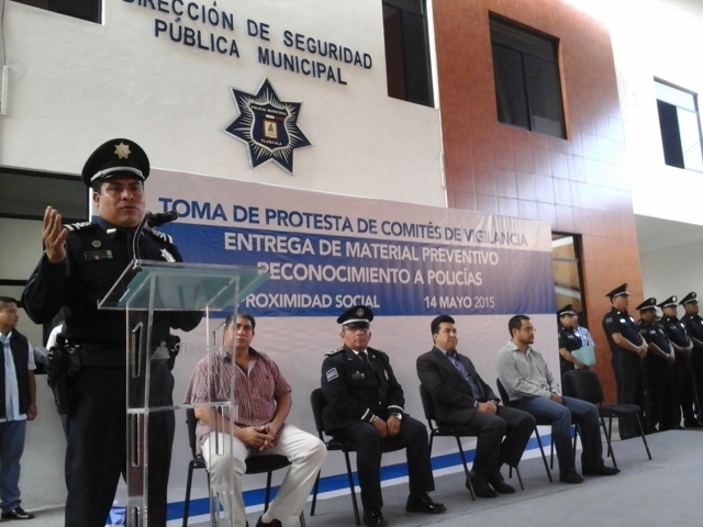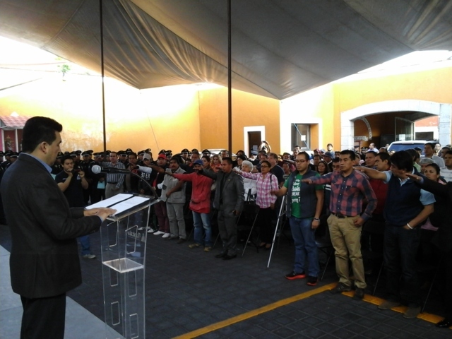 En el patio de la Dirección de Seguridad Pública Municipal, se llevó a cabo el evento de toma de protesta, así como la entrega de reconocimientos y estímulos económicos a 16 policías por su destacada labor contra el combate al hampa, entre ellos Jaime Hernández, Arturo Cuamatzi, Osvaldo Ramírez, Francisco Reyes, Valentín Contreras, Rogelio Juárez, Fernando González, Sergio Cortés, Mauro Sánchez, Oscar Cano, Lucrecia Santiago, Antonio Texis, Luis Romero, Pedro Cuéllar y Juan Sánchez.