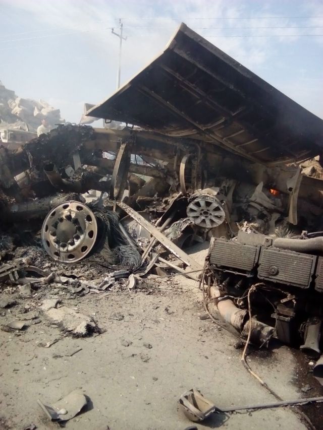Fue tal la fuerza del impacto que el vehículo más chico quedó prensado y junto con la cabina del segundo trailer se incendió. Hasta el momento se desconoce el número de víctimas porque solo quedaron hierros retorcidos y carbonizados.
