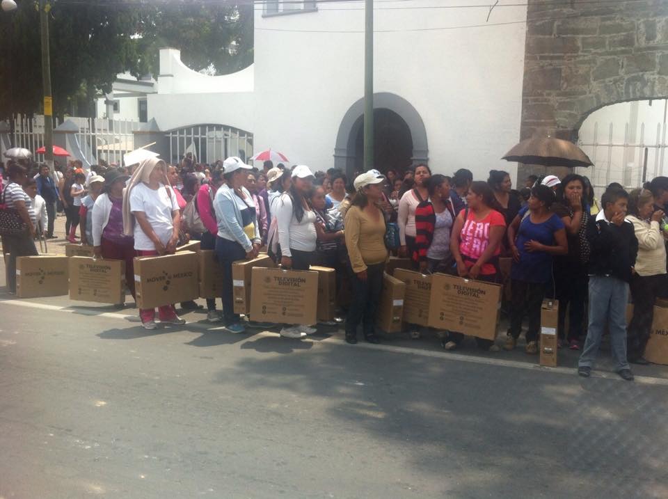 Aunque el reparto de televisiones se efectúo en el vecino estado de Puebla, lo cierto es que pobladores de la comunidad de San Isidro Buensuceso, perteneciente a San Pablod el Monte si acudieron a recibir su aparato.