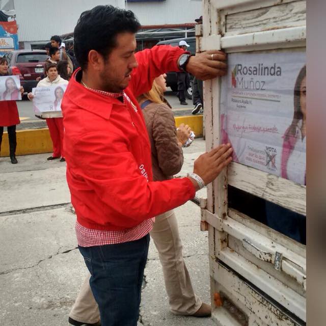 Ignacio Ramírez, titular de la Coepris fue captado pegando propaganda de la candidata del PRI Rosalinda Muñoz