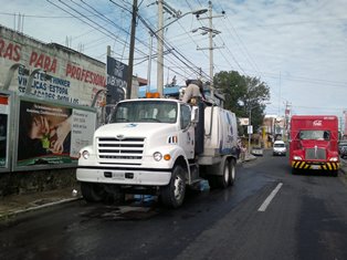 La Comisión de Agua Potable del Municipio (Capam), intervino con el camión tipo Vactor para desazolvar a base de presión de agua y succionar el tubo.