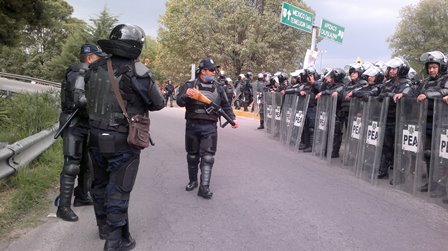 Sin embargo, decenas de granaderos llegaron al lugar y los rodearon para tiempo después efectuar el desalojo y liberar las vías de comunicación, esto derivó en jaloneos ante la resistencia de los manifestantes de la CNTE sin que se registraran enfrentamientos violentos.