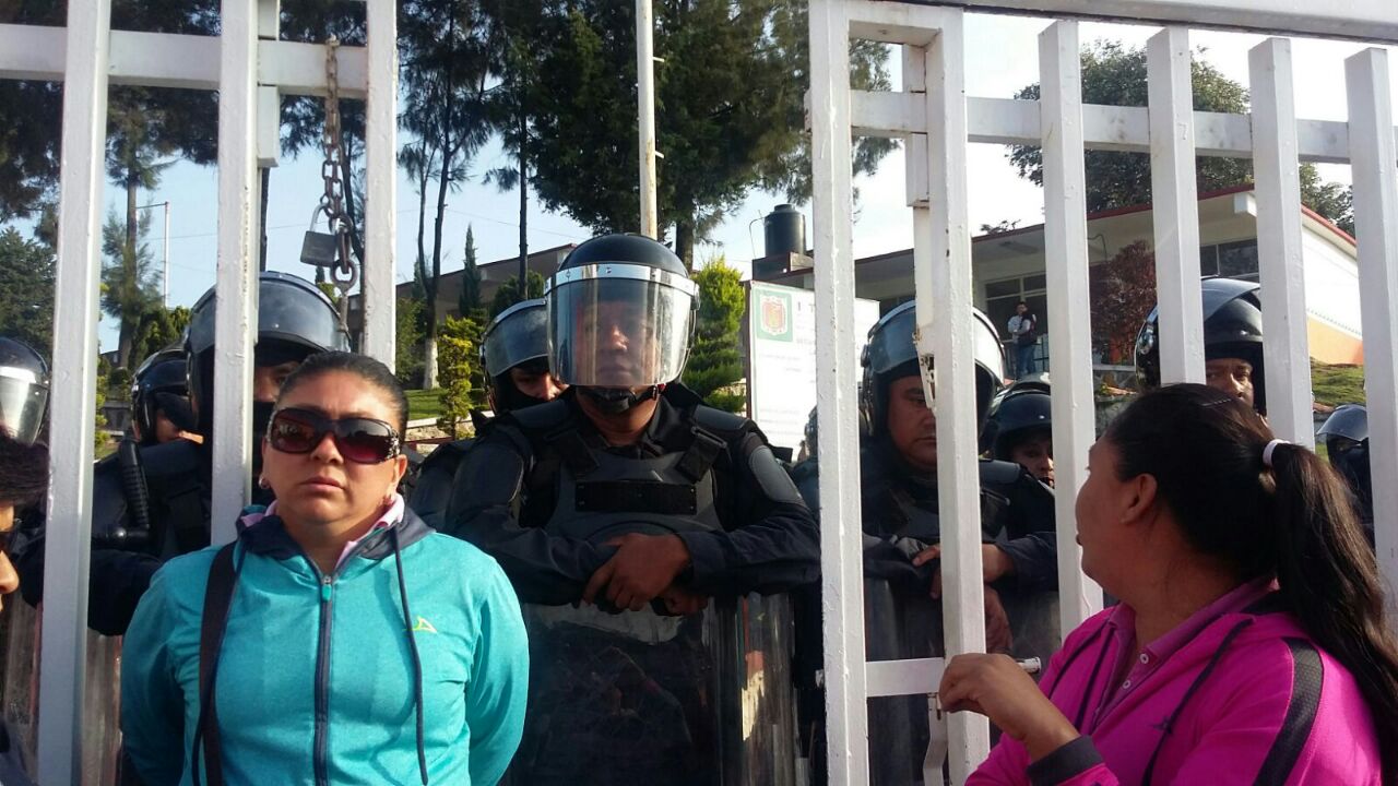 Al respecto, maestros que acudieron a las instalaciones de la escuela secundaria federal ubicada en la capital del estado, Benito Juárez denunciaron a este medio el excesivo cerco de seguridad y las actitudes intimidatorias y hostiles por parte del gobierno priísta de Mariano González, ya que aunque llegaron de manera pacífica ya los esperaba un contingente de policías armados.