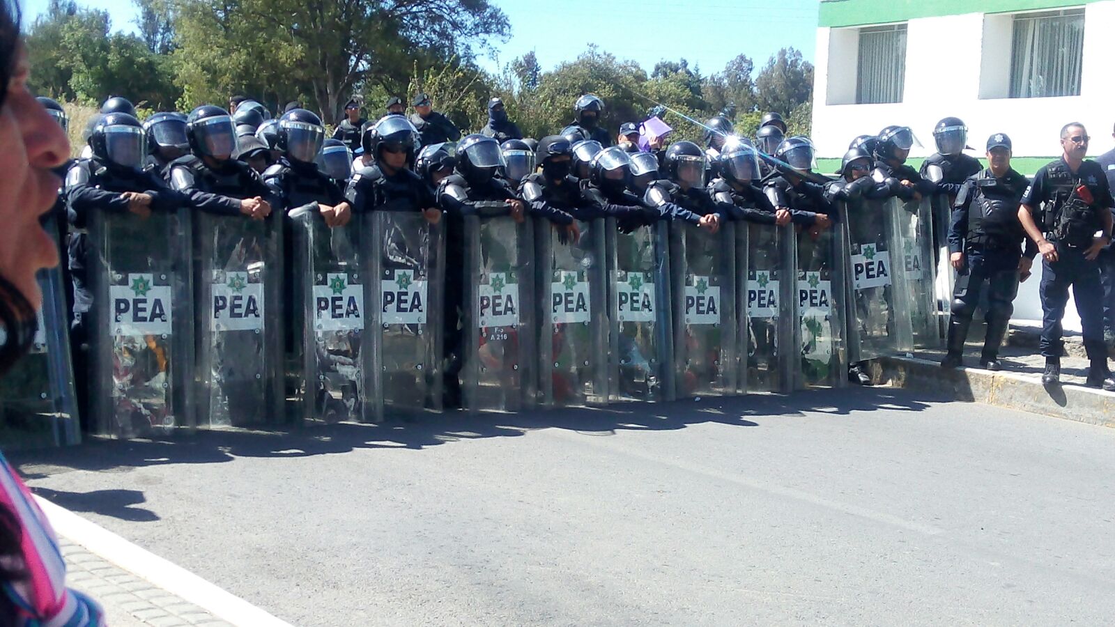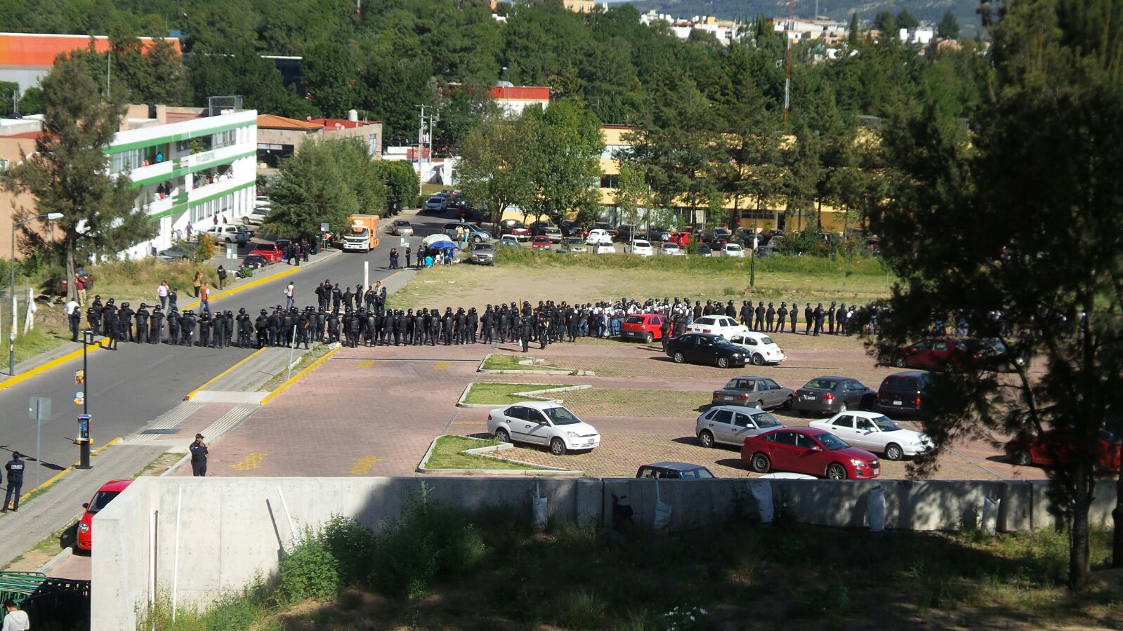 Fue un importante contingente de granaderos que amenazó a los docentes con utilizar agua para impedir su paso, además de que al verse claramente superados los maestros desistieron en su intentona por llegar a las oficinas que alberga las oficinas del secretario de Educación Pública, Tomás Munive Osorno.