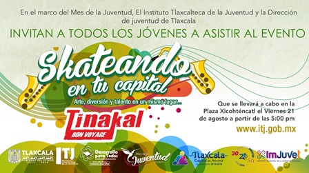 En el marco del mes de la juventud, el Instituto Tlaxcalteca de la Juventud (ITJ) y la Dirección del Instituto Municipal de la Juventud del Ayuntamiento de Tlaxcala, invitan a todos los jóvenes a asistir al evento “Skateando en tu Capital”, que se llevará a cabo en la Plaza Xicohténcatl el viernes 21 de agosto a partir de las 17:00 horas.