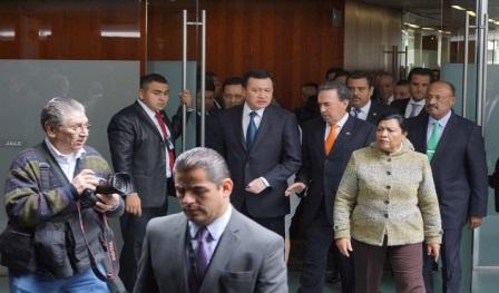 A su arribo al Senado del Secretario de Gobierno, Miguel Ángel Osorio Chong, la Senadora Martha Palafox Gutiérrez formó parte de la comitiva de recepción en su función de Secretaria de la Mesa Directiva.
