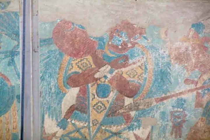 El Mural de la Batalla o del Sacrificio Divino y las imágenes del pórtico donde se ubican los personajes Ave y Jaguar se encuentran como originalmente fueron sepultados.