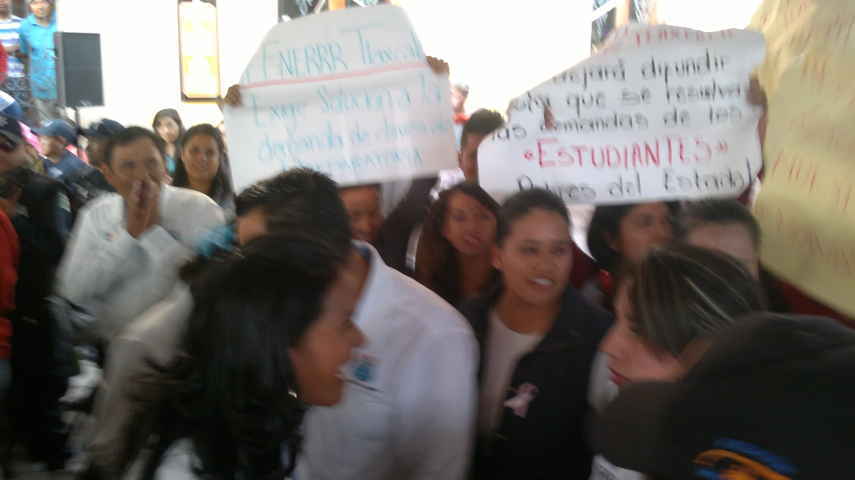 Lamentaron que durante el acto al que hizo acto de presencia el titular del Ejecutivo local, empleados de la presidencia municipal de Tlaxco hayan intentado coartar su libertad de expresión, amedrentándolos con el solo hecho de empujarlos y lanzarles uno que otro manotazo.