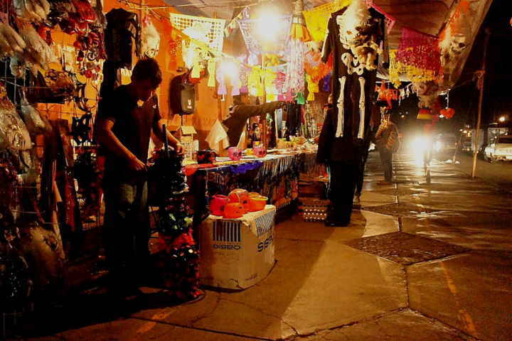 Estas calaveritas de azúcar se encuentran por todos lados, ahora en las cabeceras municipales es tradición la instalación de puestos de temporada, ahí se encuentra de todo, disfraces, frutas, flores, incienso y copal.